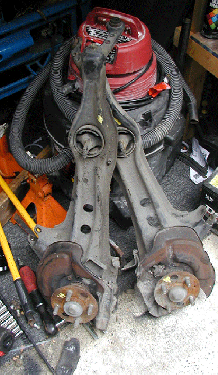 Here are my beautiful rear trailing arms, before I cleaned them up and put new dust shields and hubs on.