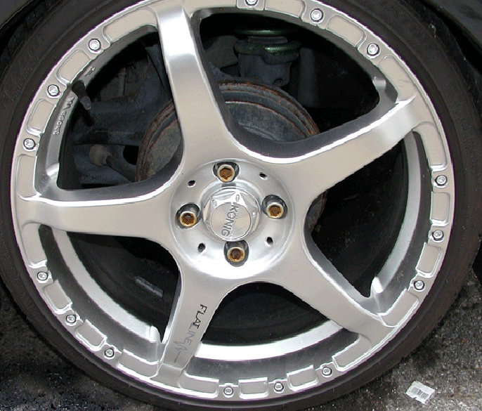 Brake Upgrade: Well I decided with all the power I was going to be making in the future, once my lost parts from Canada showed up, I better be able to stop for red lights and the man. So off to the junk yard to do some research. I found that I could take the rear brakes off a 94 Integra GSR and put them on my car with the trailing arms from the Integra as well. I would also have to transplant the brake cables from that same Integra, so my e-brake would work. I also found that I could take the spindles, hubs, rotors, and calipers from a Civic EX, I could just mount them up with no problem and go. This was of course after I tried a set of Integra GSR spindles which you cannot use I found out because the arms are longer and throw off the steering badly. So the 98 Civic Ex ones worked out. Also don't use the Integra Calipers because the diameter of the cylinder in the caliper is larger and requires more fluid which means you will have to go to a larger master cylinder to have enough brake fluid for them when you stop.