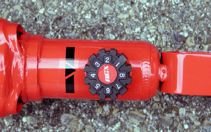 The front struts adjust front inside the engine bay atop the strut tower. Here you use a little fat head screw driver to adjust them, 1 is softest and 4 is the hardest.