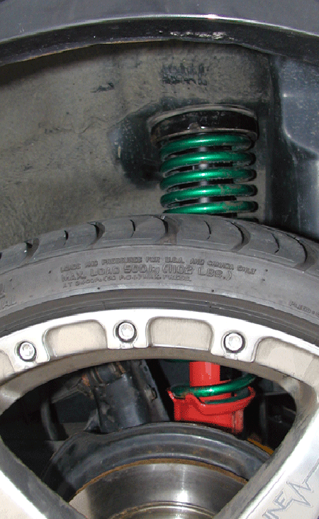 Suspension Upgrade: I also decided to upgrade my suspension on the car. I went with KYB AGX shocks and struts with Tein Springs. The KYB shocks and struts are adjustable as far as how hard or soft the suspension rides. The adjustment is made easily without having to remove the components or jack up the vehicle.