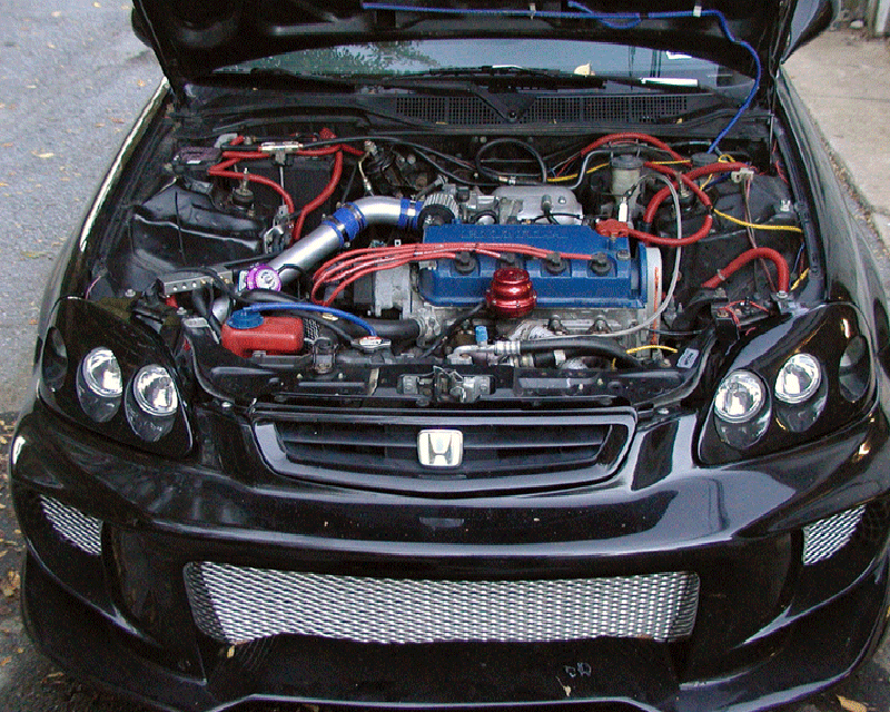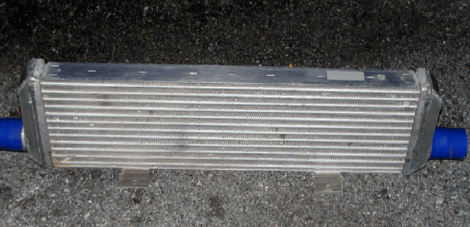 I finally received my intercooler from the guy I bought it from on Ebay.. Back story was he sent it UPS, from Canada and UPS lost it, fuckers.. Which held my turbo project up for months.. Well anyway he sent me the one off his car. It had a few bugs smashed into its' fins but otherwise looked and performed perfect. He also made me 2 1/4 intercooler pipes, now I don't know if he built them for a different type of Honda that is only special to the great North called Canada.. But, dude I had to cut and re-weld the pipes and get some extra pipe just to finish the job.