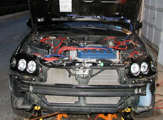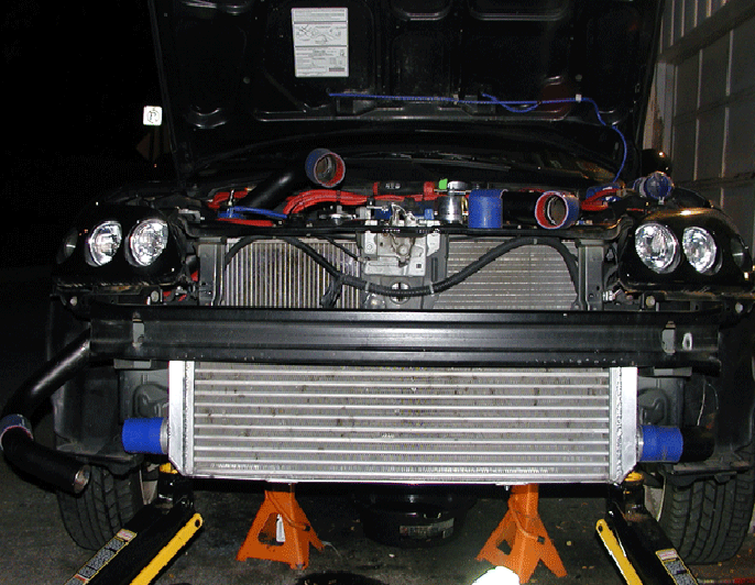 Once the intercooler was all installed I put the front bumper cover on and you can't even notice the intercooler that well from outside because of the mesh grill in the bumper cover.. I like less obvious, that way more people will not know the car is boosted.