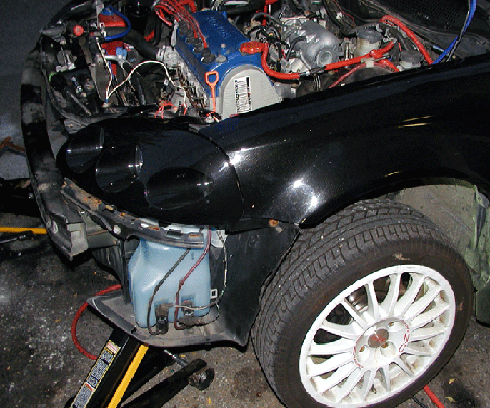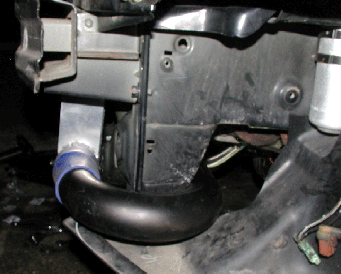 I also had to cut some of the metal behind the passenger side headlight so I could run the outlet pipe of the intercooler to the intake manifold.